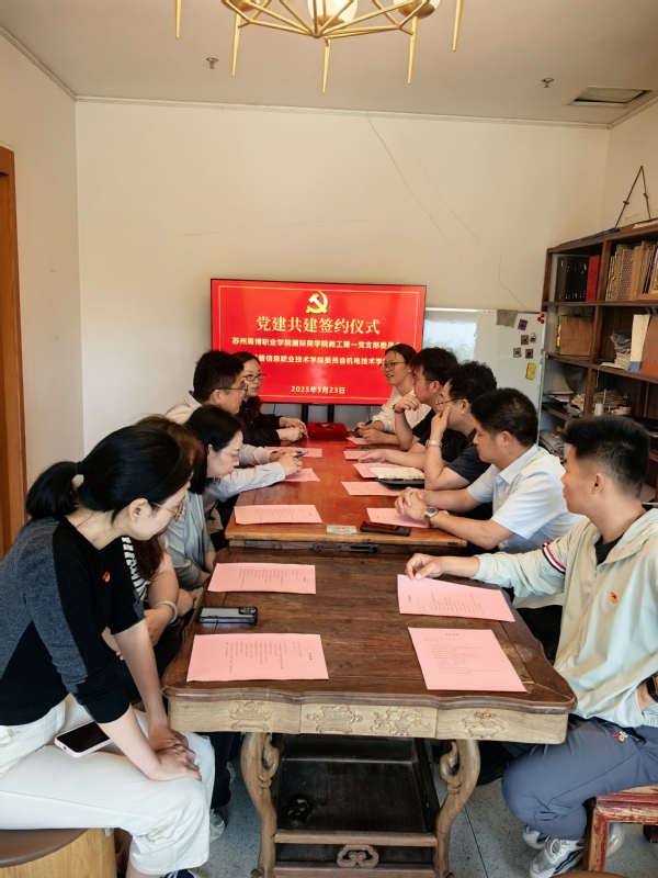 2025年5月23日,国际商学院教工第一党支部与苏州托普信息职业学院机电技术学院党支部举行党建共建签约仪式,旨在通过党建引领深化双方在教育教学、科研合作及党建活动等方面的交流与合作,共同推动新时代高校党建工作创新发展。