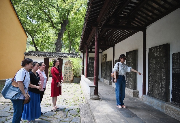 范仲淹纪念馆坐落于苏州市吴中区天平山南麓,是为纪念北宋著名政治家、文学家、思想家范仲淹而建。范仲淹为宋代名相,也是中国古代重要的政治家、文学家。活动中,全体党员沿途参观“范公祠”“忧乐坊”等历史遗迹,详细了解范仲淹的文学成就和为官生涯,深切感悟范仲淹在苏州为官时为老百姓办实事、做好事的实干精神,深刻领会范仲淹矢志为民的高尚情操和廉洁之风。姑苏治水、为民办学、麦舟济盆、西征守边、庆历新政、先忧后乐等一系列典故,让党员同志们沉浸式感受到作为高校教育工作者,必须要有“先忧后乐”的精神,要将个人理想融入教育强国建设,以“甘坐冷板凳”的定力钻研教学科研,以“俯首育桃李”的情怀助力学生成长,在三尺讲台践行初心使命。