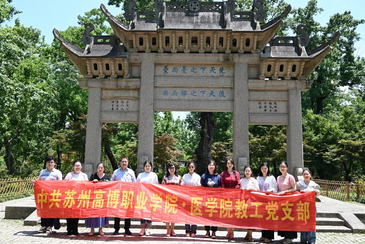 为弘扬中华优秀传统文化,深化党员干部廉政教育,2025年6月6日,医学院教工党支部组织全体党员赴苏州天平山范仲淹纪念馆,开展“传承范仲淹精神,筑牢廉洁初心”主题党日活动,通过实地研学、廉政党课等形式,感悟先贤家国情怀,汲取奋进力量。