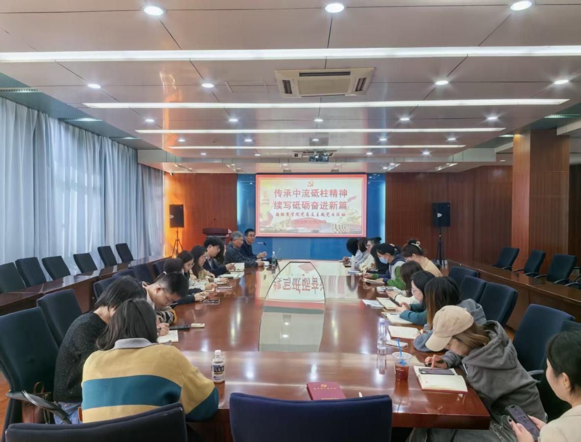 为深入推进党史学习教育常态化长效化,筑牢信仰之基,补足精神之钙,10月29日下午13时,国际商学院党总支根据本学期工作安排,在实训楼B201会议室组织开展了主题为“传承中流砥柱精神,续写砥砺奋进新篇”的主题党日活动。本次活动由学院党总支副书记张志豪主持,全体党员参加。