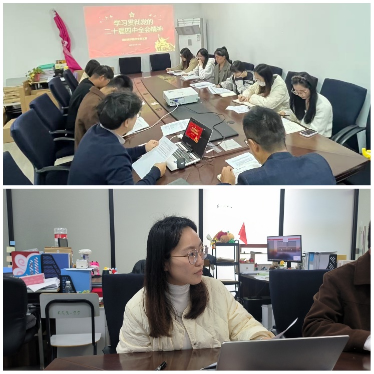 在随后开展的“深学全会精神,砥砺奋进初心”主题党日活动中,支部纪检委员李松晏老师围绕二十届四中全会精神作专题领学,系统解读了全会提出的重大战略部署和核心要义,并结合高等教育工作实际,分析了新时代青年党员的责任与担当。马俊涛老师从理论联系实际的角度,分享了将全会精神融入学生工作的思考。四位学生党员结合自身学习体会作了交流发言,从“强化理论武装”“践行青年使命”“服务基层发展”等角度畅谈心得。现场讨论气氛热烈,与会师生一致表示,要将全会精神转化为奋进动力,在学思践悟中筑牢信仰之基。