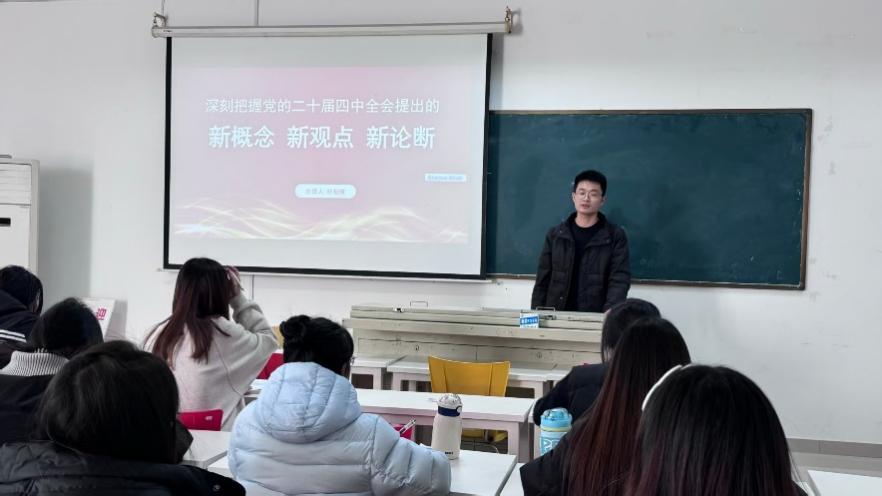 紧跟党中央最新精神和决策部署,学生党支部组织委员杜相锋老师带领积极分子学习了党的二十届四中全会精神。杜老师详细解读了大会的主题、主要成果以及新时代新征程党的使命任务。通过学习,积极分子们对党和国家事业发展的宏伟蓝图与大政方针有了更清晰的理解,提升了围绕中心、服务大局的自觉性。
