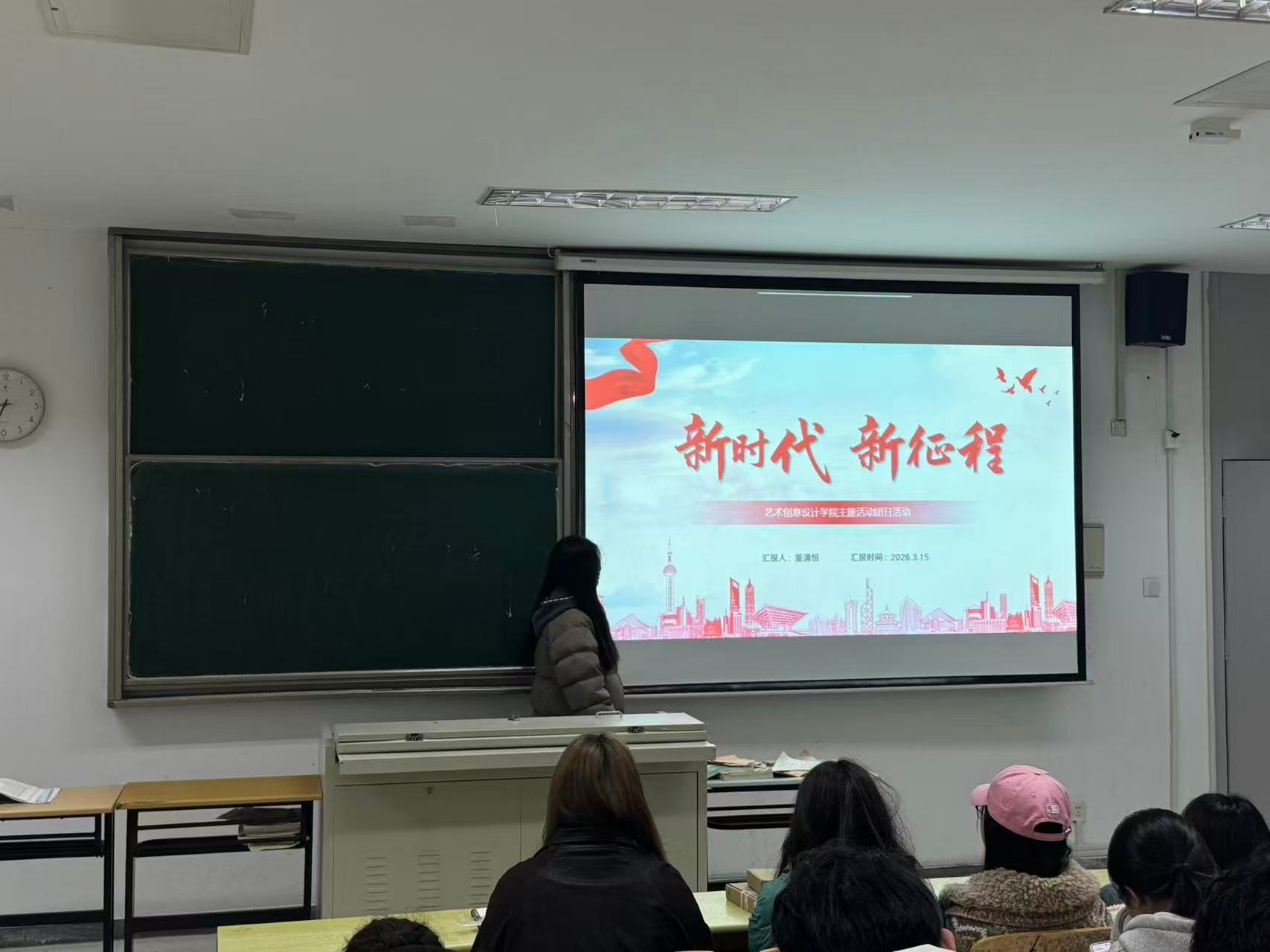 2025年3月18日,艺术创意设计学院分团委面向我院全体2025级学生团员在教室开展了以“新时代 新征程”为主题的团员信仰公开课。本次课程由25074室内1班班长董潇恒同学主讲,我院全体2025级学生团员共同参与学习。