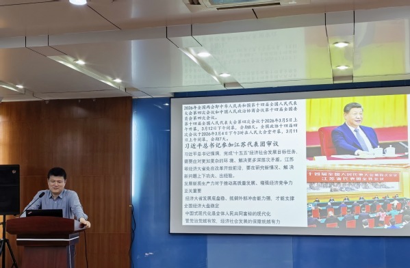 为深入贯彻2026年全国两会精神,落实“一体推进教育科技人才发展”的部署要求,破解高职院校青年教师科研工作中的痛点难点,助力青年教师快速成长为兼具教学能力与科研素养的复合型教师。4月15日下午1点,商学院邀请请苏州大学韩坚教授,开展了“结合两会精神学习,助力青年教师科研能力提升”的专题培训。本次活动由商学院党总支副书记牛伟教授主持,硅湖职业技术学院创新中心党支部、苏州托普信息职业技术学院机电技术学院党支部受邀参加,商学院全体教职工参会,沉浸式聆听专家分享,凝聚科研奋进力量。